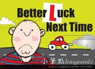 當時, 我叫自己保持冷靜, 見招拆招, 一一解決。 終於又開到那個迴旋處路口了, 心想: 「今次, 我一定要等到所有車都行駛過去, 一架車都沒有, 我才駛入迴旋處。」 沒車了, 今次順利了吧?! 可惜, 才剛剛駛入迴旋處, 忽然看到交通警察封路, 封了返回考試場地的路口。 心想:「唉, 我的運氣真的那麼差嗎? 考試才遇上封路!」 惟有依交通警察指示, 早一個路口駛出迴旋處。 不熟悉的道路上, 我仍然要硬著頭皮, 保持鎮定地開車。 幸運地, 考牌官在此突發情況下也及時提點返回考試場地的路線, 並補充一句: 「此段不算在考核之內。」 結果, 無驚無險地返回考場, 完成考試。 成功了, 今次終於合格了!